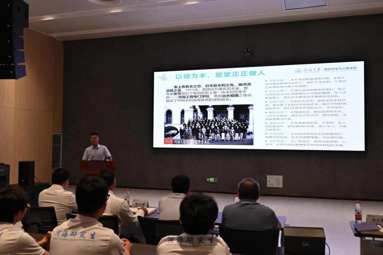 典礼最后,由学院院长赵永好进行开学第一课授课。赵院长首先介绍了河海大学历史沿革与发展状况,并从学科建设、人才培养、发展定位、科研条件、师资力量等角度详细介绍了365英国上市官方网站。赵院长结合我国材料领域的国家发展战略,阐述了我国材料行业发展的优势与机遇,并对研究生工作与学习提出要求,激励同学们刻苦学习,潜心学术。