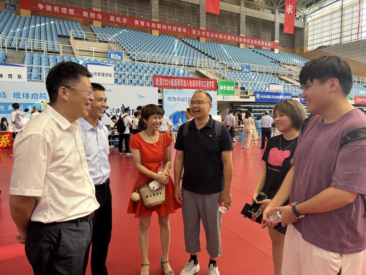学院党委书记陈伟刚,院长赵永好,副院长宋丹,副书记、副院长辛绍权与新生辅导员温泽来到宿舍看望新生,与新同学和家长们亲切交流,询问他们对材料院的第一印象和学习生活感受。