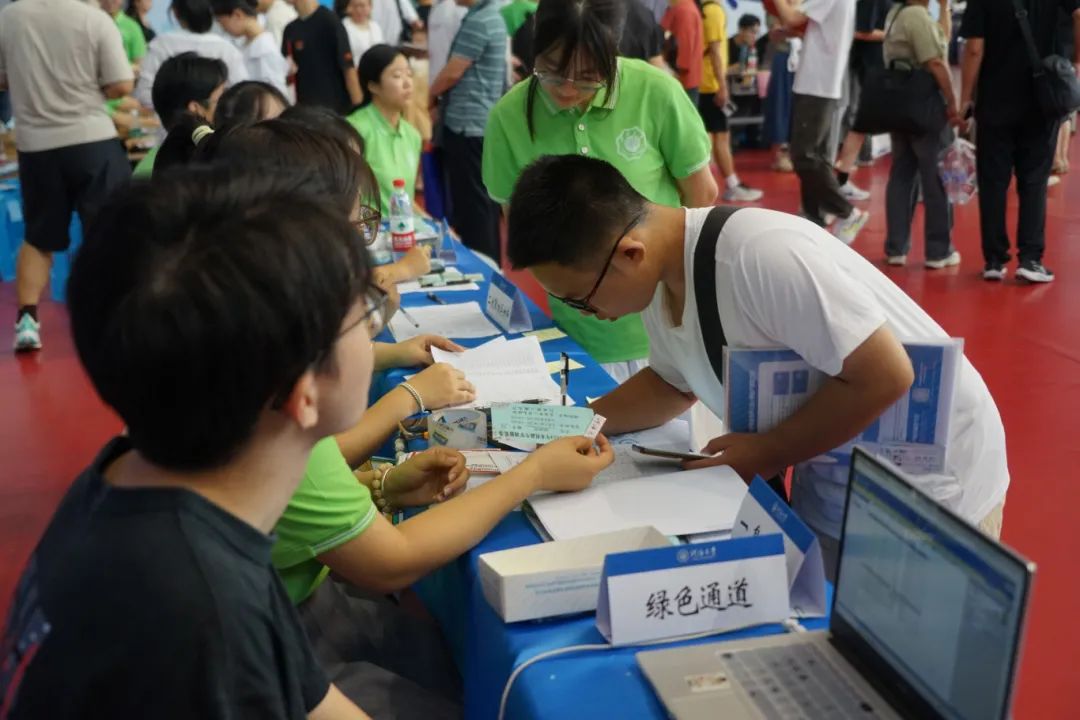从引导牌的设置、桌椅的摆放,到迎新资料的整理、咨询台的布置,每一个细节都体现着学院对新生的重视和关怀。志愿者们更是热情洋溢,以饱满的精神状态迎接每一位新生的到来,展现出材料院学子的热情与活力。