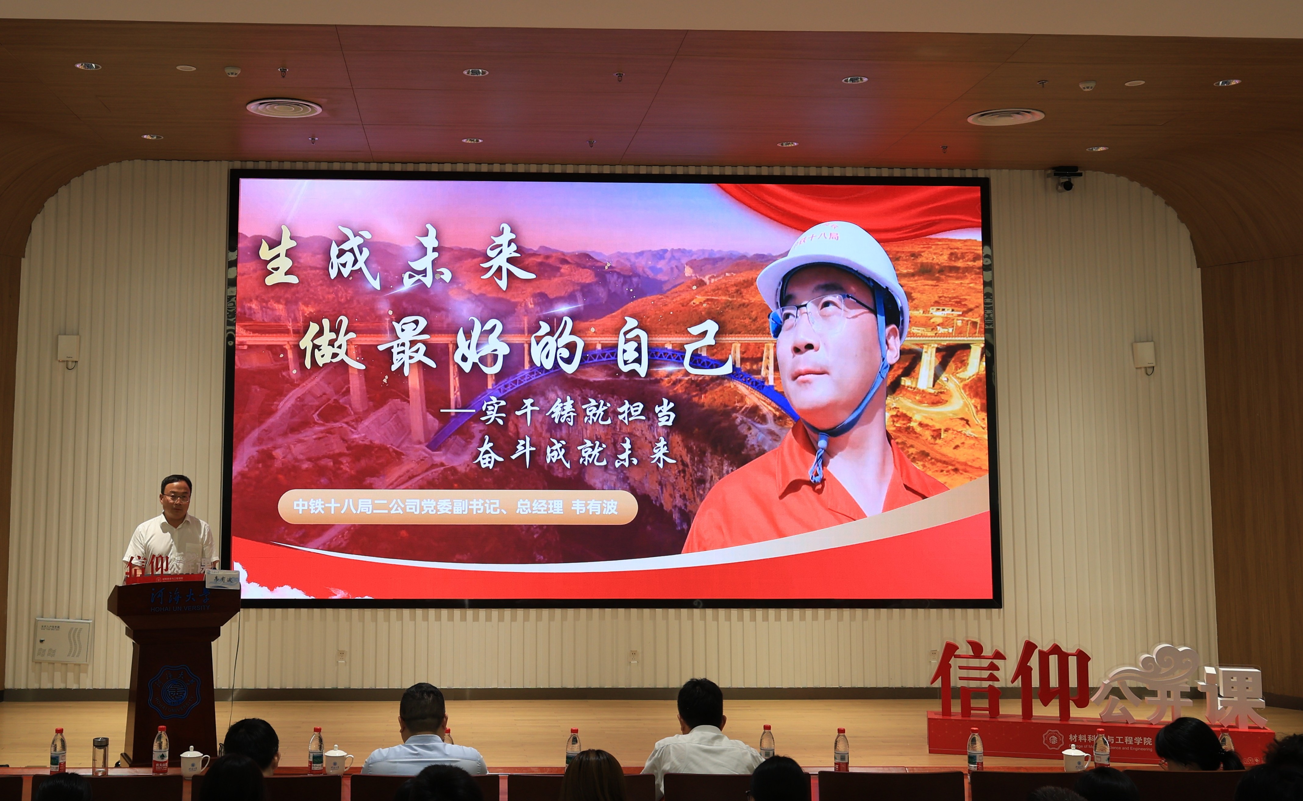 韦有波校友结合自身20年扎根工程建设和管理一线的成长历程,展示了“实干铸就担当,奋斗成就未来”的青春华章,阐述了“自信、自立、自强”、“学干、会干、能干”、“智慧、才智、智能”、“创业、立业、建功”的奋斗感悟,鼓励学弟学妹们珍惜大学时光,践行河海校训精神,以奋斗为底色,到祖国和人民最需要的地方,在专业领域深耕细作、探索创新,将青春华章写在祖国大地上。