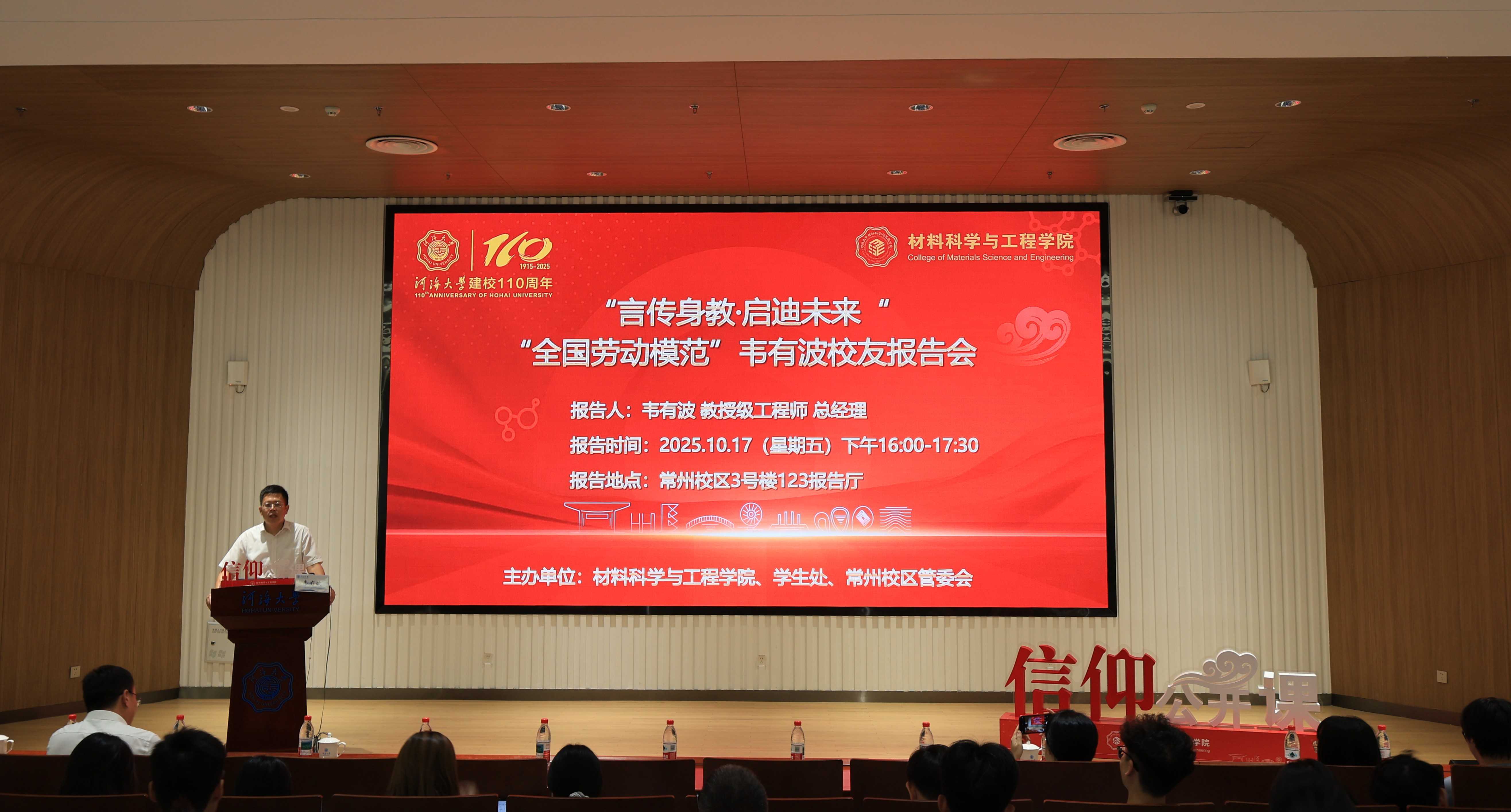 为使青年学子坚定将青春华章写在祖国大地上的选择,汲取校友榜样的奋斗力量,1017日下午,365英国上市官方网站与常州校区管委会联合举办“言传身教·启迪未来”——“全国劳动模范”韦有波校友报告会暨信仰公开课,2025年“全国劳动模范”称号获得者、我校2005届无机非金属材料工程专业校友韦有波应邀作题为《生成未来,做最好的自己》的分享报告。
