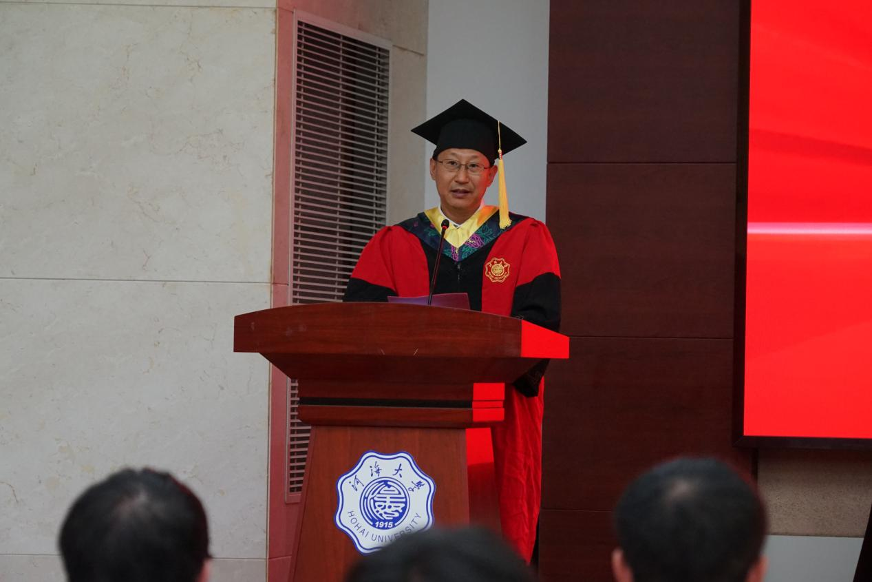 赵院长代表学院向全体毕业生致以最热烈的祝贺。他深情回顾了同学们在材料院度过的宝贵时光,见证了大家在学业科研、社会实践、创新创业中展现的才华与取得的优异成绩。赵院长指出,材料是科技进步和产业变革的基石,作为新时代的材料人,生逢盛世,肩负重任。他寄语毕业生们:一要坚守初心,胸怀家国,将个人理想融入国家发展伟业,在服务社会中实现人生价值;二要砥砺创新,勇攀高峰,敢于探索未知,勇闯科技前沿;三要脚踏实地,终身学习,在未来的工作或深造中保持严谨求实的作风,不断更新知识储备,适应时代发展;四要坚韧不拔,乐观向上,面对未来的挑战与挫折,保持材料人特有的韧性与定力,永葆积极进取的人生态度。